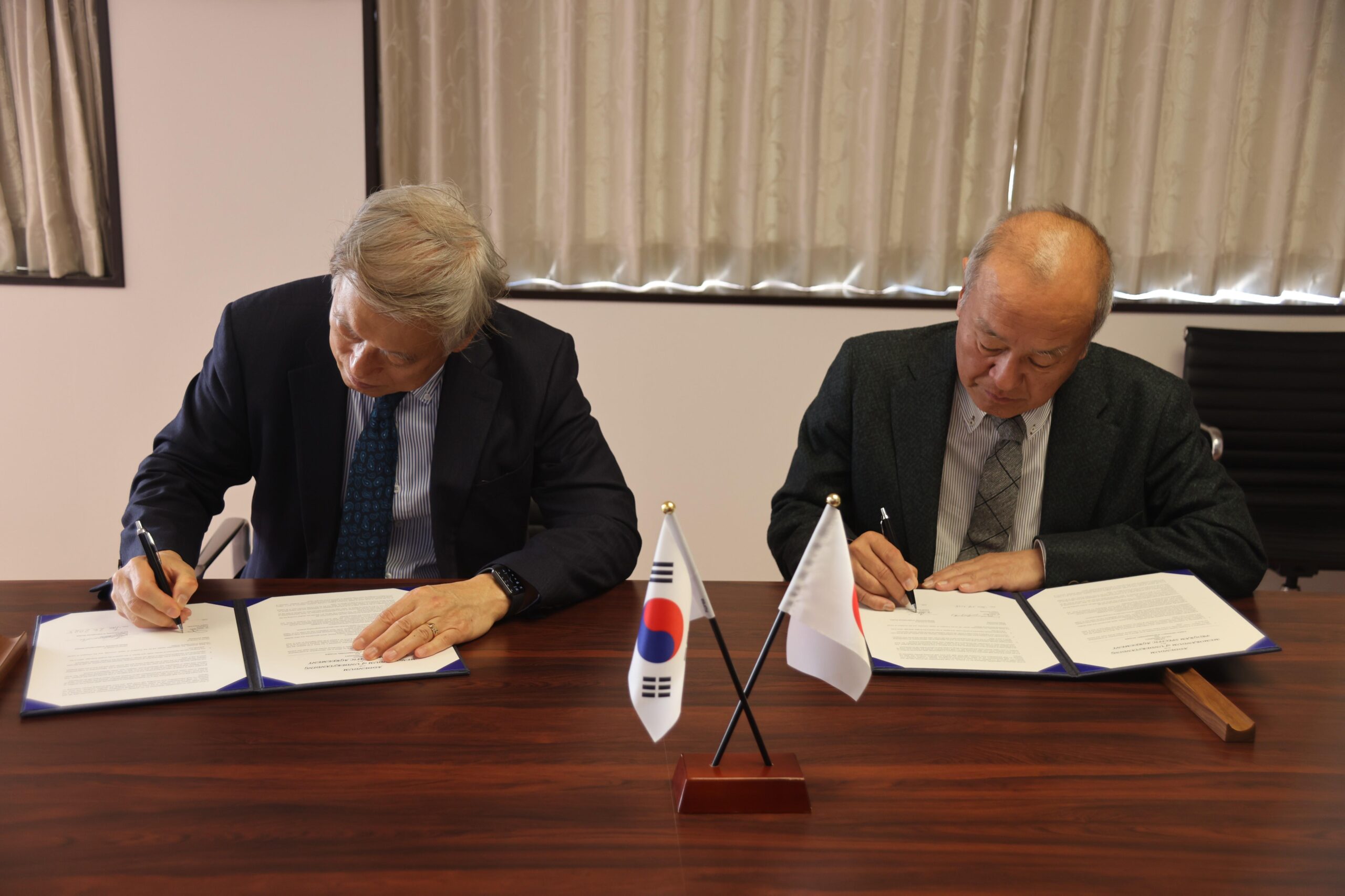 テジェ大学・廉載鎬(ヨム ゼホ)総長は、韓国・高麗大学元総長、韓国政府 国家AI委員会の副委員長でもあり、日本とのつながりも深く、2024年4月に本学を訪問。神田外語大学の多文化環境や学生のアクティブな姿勢が評価され、グローバル教育の新しい形をともに創ることを目指して、2025年1月24日(金)に連携協定を締結しました。