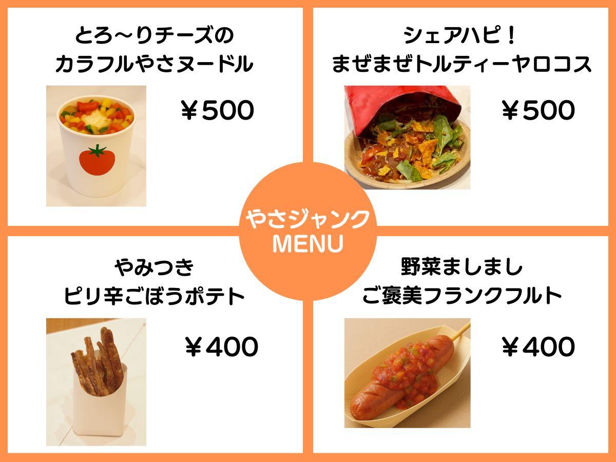 【内  容】 学生が考案した “やさジャンク”メニュー4種の提供販売。