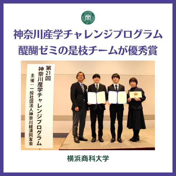 横浜商科大学(横浜市鶴見区、理事長吉原毅)の醍醐身奈教授のゼミに所属する学生チームが、このたび「第21回神奈川産学チャレンジプログラム」において、株式会社神奈川銀行と連携した取り組みで優秀賞を受賞しました。今回の受賞は、学生たちが専門知識を活かして実践的な教育プログラムを構築し、その有効性を検証したプロセスが高く評価されたものです。