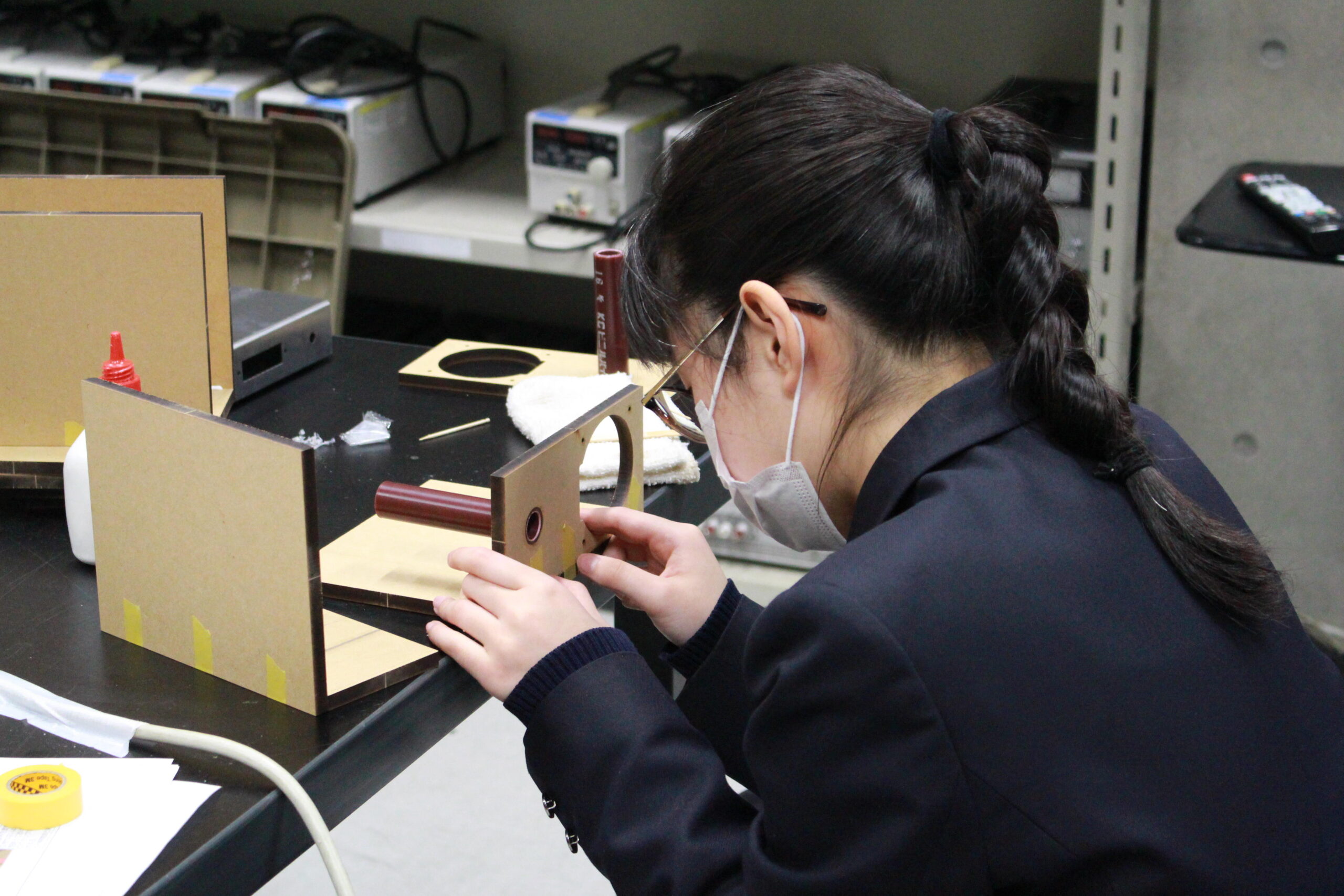 高校生対象体験学習プログラム「Let’s Try! オーディオづくり」は、2025年3月25日(火)~3月27日(木)までの3日間で開催されました。スマートフォンに保存した音楽を聞くことができるアンプとスピーカーのオーディオシステムを金属加工、回路製作から組み立て、調整までの工程を大学の設備を用いて行い、ひとり1セットずつ製作するものです。今年度は、埼玉県、東京都、神奈川県の高等学校等より29名の方にご参加いただきました。
