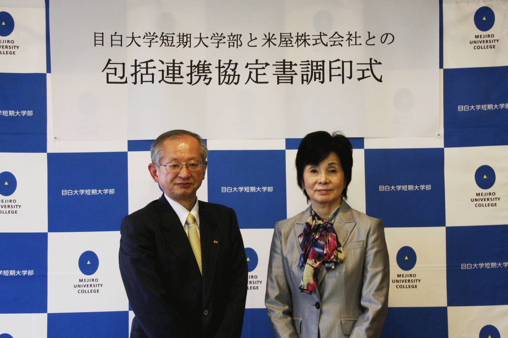目白大学短期大学部と米屋株式会社は、産学連携による相互の発展、学術研究の推進、人材育成などに貢献するため、3月9日に目白大学短期大学部において包括連携協定書調印式を執り行った。