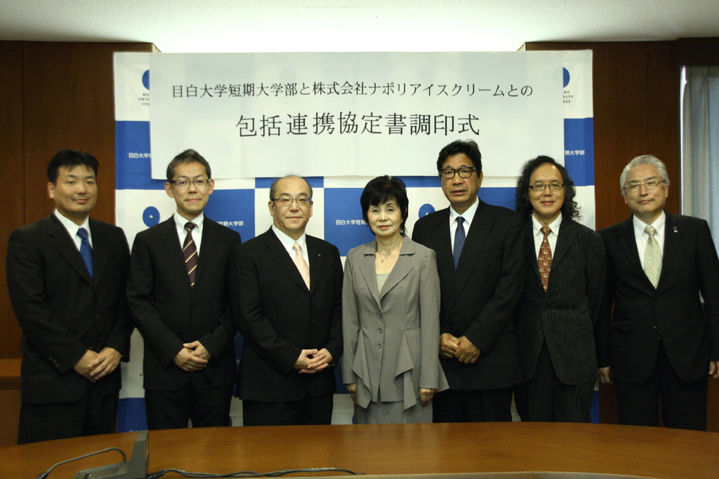 目白大学短期大学部と株式会社ナポリアイスクリームは、産学連携による相互の発展、学術研究の推進、人材育成などに貢献するため、10月3日に目白大学短期大学部において包括連携協定書調印式を執り行った。