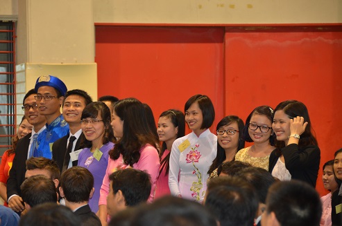 次に、新入生紹介を行い、国ごとに一人ずつ名前を読み上げられた新入生は、笑顔で手を振り皆に挨拶をした。なごやかな雰囲気の中、ご来賓の方々、教員紹介も行われた。