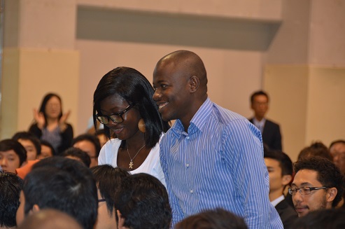 今年は、ABEイニシアティブの初年度でもあり、安倍晋三首相からもお祝いの言葉が届いた。首相はご自身のアフリカ訪問時の体験を踏まえアフリカに無限の可能性があること、そのアフリカからの留学生の活躍に期待していることを述べ、新入生全員に、「国際大学」は日本にありながらも、常に世界に向いている、日本が誇るべきグローバルな大学であるので、頑張って学んでほしいと期待をこめた言葉を送った。