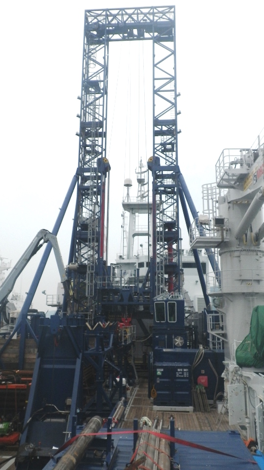 明治大学 研究・知財戦略機構ガスハイドレート研究所を中心とした表層ハイドレート研究コンソーシアム(明治大学、秋田大学、信州大学、千葉大学、東京大学、大阪大学、九州大学および独立行政法人・産業技術総合研究所)は、掘削装置(リグ)を搭載した海洋資源調査船「白嶺」(独立行政法人・石油天然ガス・金属鉱物資源機構)を用いて、日本海上越沖および最上トラフにおける表層型メタンハイドレートの掘削調査を開始した。