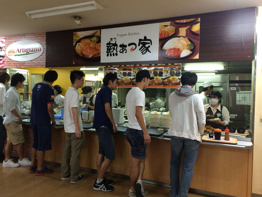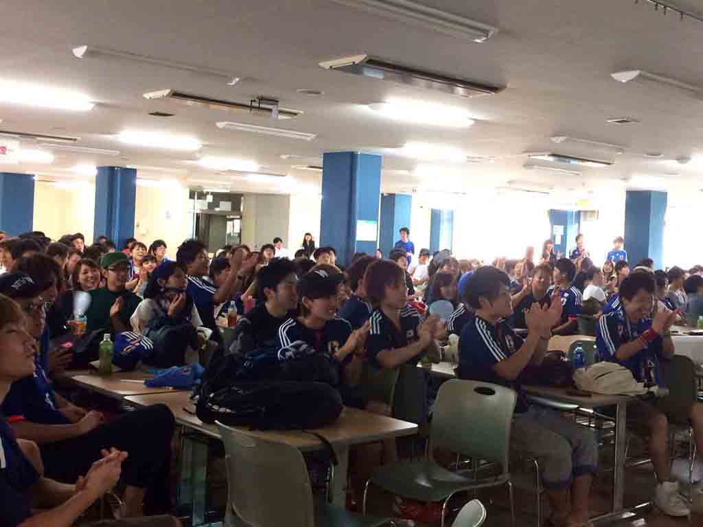 帝京大学八王子キャンパスが「FIFAワールドカップブラジル大会 日本対ギリシャ戦」のパブリックビューイングを、100円朝食を実施している学生食堂で開催