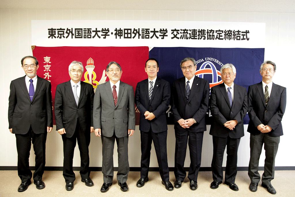 また酒井邦弥学長は「東京外国語大学と神田外語大学は、開学以来様々な面で連携をしてきたが、今後はさらに連携、またお互いに切磋琢磨し、グローバル時代における相乗発展をしていきたい」と語った。