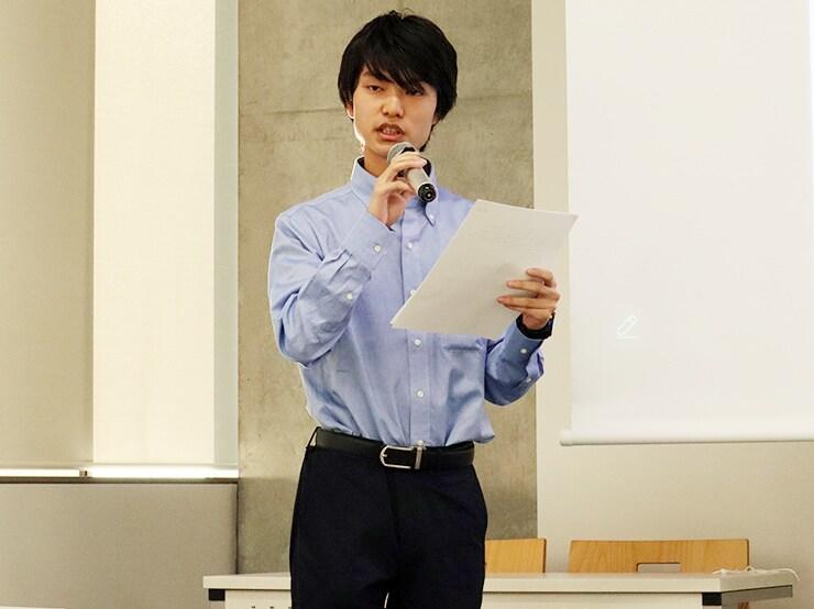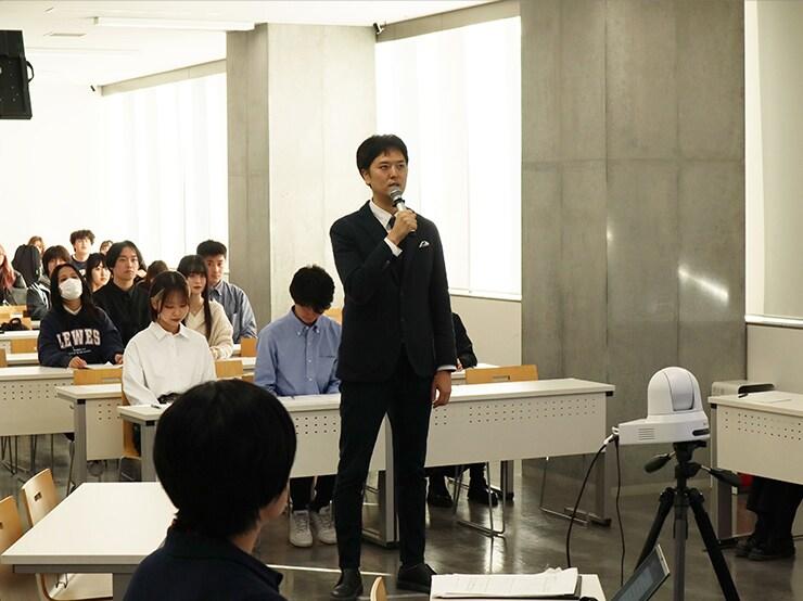 続く趣旨説明では、同授業の担当者である観光経営学科の狩野朋子教授が「学生案に対する率直な意見や批判をいただくことで、講評会を、制作物を共に作る場にしたい」と述べた。