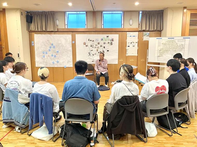 その後、留学生を含む学生が制作物の途中経過を発表。学生が考える岡本と地域の方たちが考える岡本の差異について議論ができ、有意義な講評会となった。閉会の言葉では、岡本商店街振興組合の西村和也理事長が、「2025年は同商店街が40周年を迎えるタイミングであり、岡本の記憶を記録する『岡本手帖』に期待している」とコメント。最後に観光経営学科の境健学科長が「解答のない分野に挑戦する」ことの意義を述べ、締めくくられた。司会は同授業担当者である小室譲講師が行った。