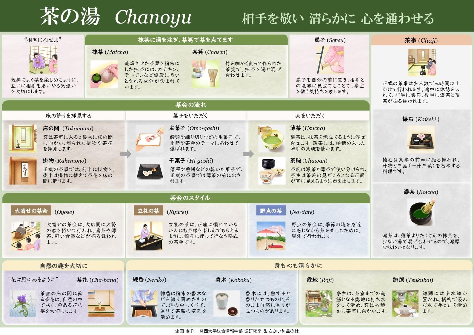 関西大学総合情報学部・堀雅洋ゼミは、堺茶の湯まちづくり条例を推進する堺市との地域連携事業の一環として、茶の湯文化を身近に感じてもらえる「茶の湯カルタ」をさかい利晶の杜と協働で制作してきました。このたび、海外の方にも茶の湯文化について楽しみながら理解を深めてもらえるように英語版の茶の湯カルタを新たに作成しました。さらに、カルタアプリを開発するとともに茶の湯カルタの内容を概観できるフライヤー(チラシ)と映像を日本語・英語両言語で制作しました。これらのアプリとコンテンツを堺市の文化観光拠点であるさかい利晶の杜 開館10周年記念イベント(3月20日開催)で公開します。