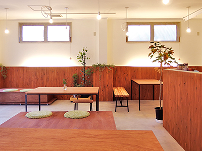 日本工業大学の学生が店内のデザインやイス、テーブルの制作を手掛けた「エコカフェ」がオープン