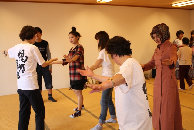 30畳の畳敷きのクラブハウスで、留学生らは、「河内音頭」のメロディーに合わせて、踊りを特訓。アンコールを求める熱心さだった。初めて浴衣を羽織ったタイからの留学生は,「胸が抑えられてきつかったが、楽しかった」と感想を話していた。