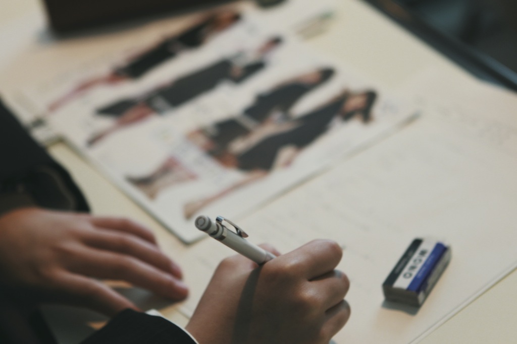 デザイナーの先生と大丸の方の前で、グループ毎にプレゼンテーション。5枚のスタイル画からもとになるデザインを2点くらいに絞り先生に渡し、デザインを作成