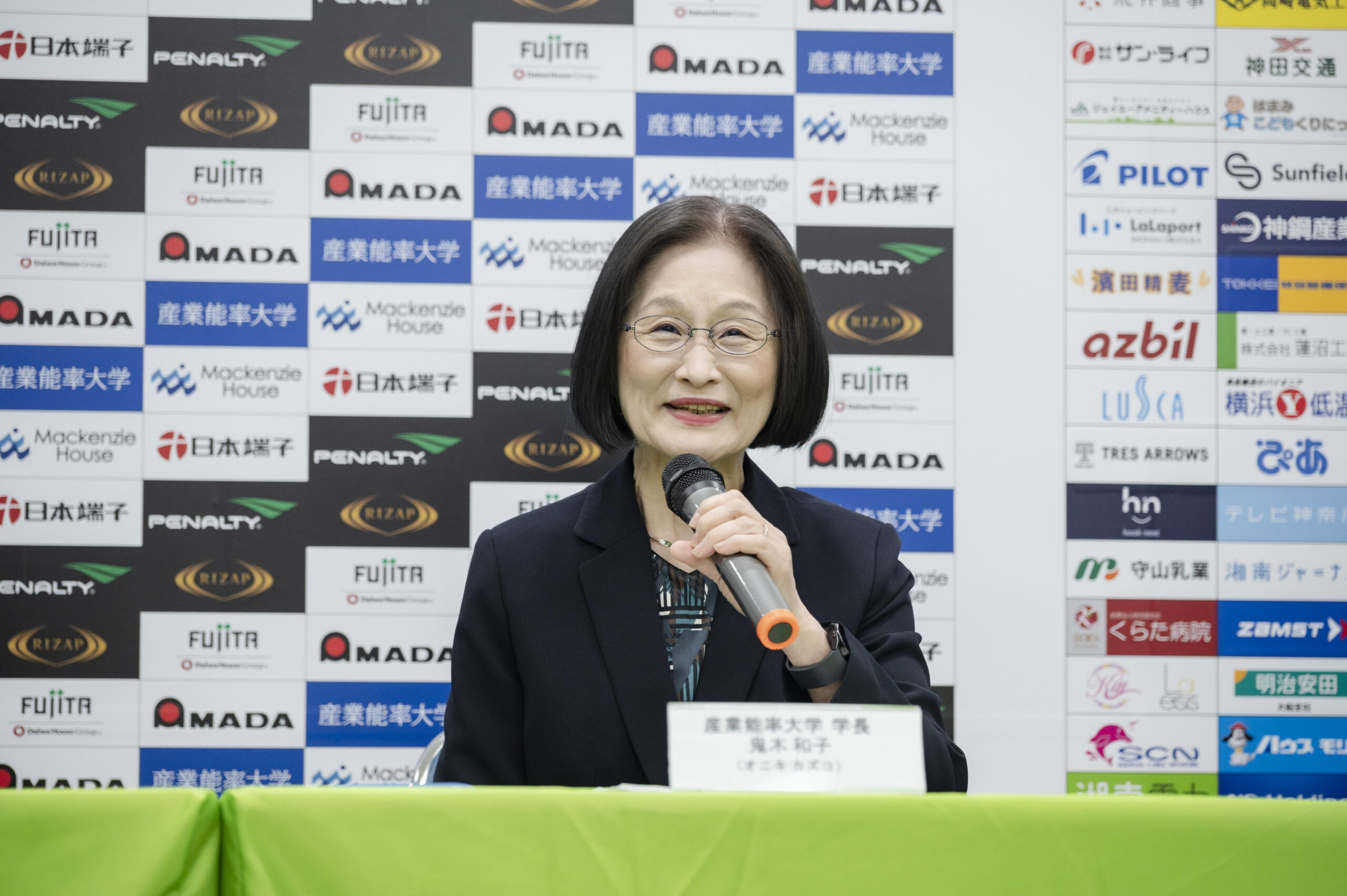 本学は、「知識は実際に役立ってこそ価値がある」という建学の精神のもと、マネジメント教育・実学教育を推進し、学生の活躍を通じて、高い評価をいただいています。湘南ベルマーレとの20年にわたる連携は、他に類を見ない多彩なコラボレーションや授業を展開し、数々の成果をあげてきました。その取り組みは、まさに湘南ベルマーレのクラブスローガン「たのしめてるか。」を体現するものであり、楽しさの中に学びを見いだす貴重な機会となっています。