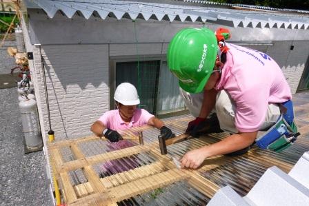 こうした能力を最大限に生かし、有志らはこれまで10回、延べ53日間429名がボランティア活動を実施。瓦礫の撤去をはじめ、小屋や物置の解体・移設、トイレの修理、案内板の製作・設置、風除室の建設、さらに仮設住宅の庇(ひさし)の建設など、きめの細かい支援活動を行っている。