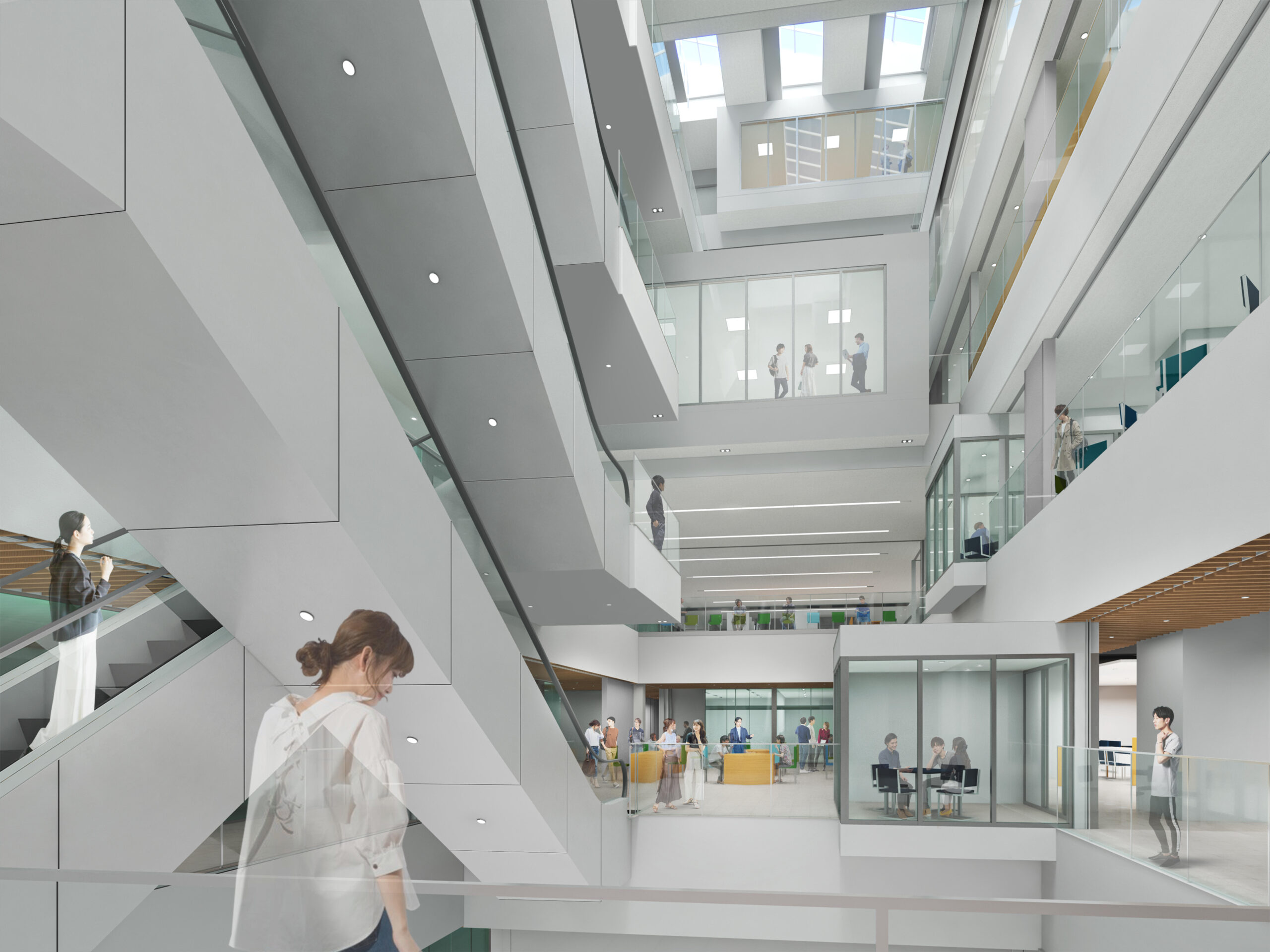 分野の垣根を超えた教育の場として、学生・教職員のさまざまな交流を生み出すとともに、周辺地域における交流拠点として地域社会に開かれたキャンパスづくりを目指す。