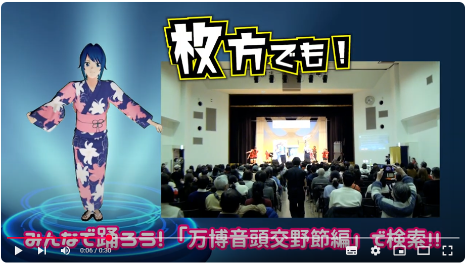 ● CGアニメも登場する踊りの紹介動画を枚方市役所前など11カ所で放映中