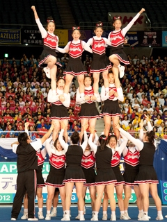 帝京大学チアリーディング部が、8月24日(金)~26日(日)に代々木第一体育館で開催された国内最大級のチアリーディング大会「JAPAN CUP 2012 チアリーディング日本選手権大会」に出場し、第3位入賞を果たした。