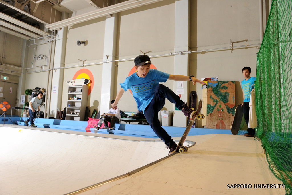 札幌大学の独立系課外活動団体「札幌大学X-SPORTS研究会(通称:X’S。以下X’S)」のスケートボード施設(通称:X’Sスケートパーク。以下X’Sスケートパーク)に惹かれ、入部する学生が年々増加。学生らは、※X-SPORTS(主にスノーボード、スケートボード、サーフィン、フリースキー)を通して学生生活を充実させている。