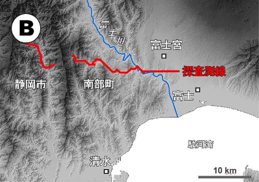 この地震探査は、強力な振動を発生させる装置をもつ車両(バイブレータ車)とダイナマイトを用いて人工地震を発生させ、50mごとに配置される地震計から得られる膨大なデータを集積・処理することによって地下構造を把握するものである。調査のための測線は、富士市から出発し、富士川河口地震帯を横断して、山梨県南部町の山地を通過、さらに海抜1400mの竜爪山系中の糸魚川静岡構造線を越えて静岡市葵区の梅ヶ島にいたる35kmである。本探査によって、富士川河口断層帯やさらには糸魚川静岡構造線が、沈み込むフィリピン海プレートとどのように関係しているかについて解明されるに違いない。そして、東海-東南海―南海地震予測に貢献する基礎データを提供することになろう。