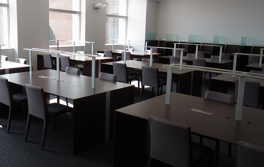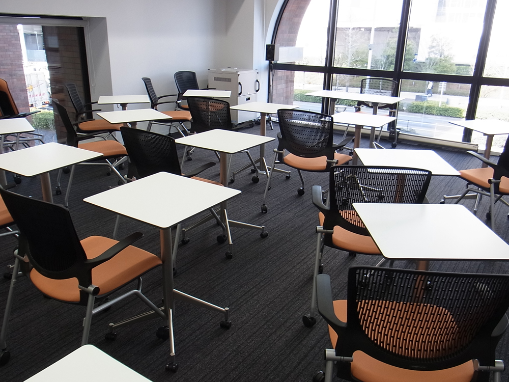 1階はリサーチフロア。電動式の集密書架で豊富な専門書を所蔵している。リサーチラウンジ、閲覧席のほか、個別ブース型の研究閲覧室も設置し、静かな環境で学習・研究に専念することができる。