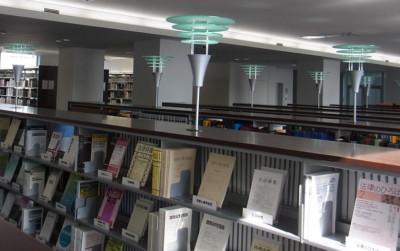 3階はスタディーフロア。図書、学術雑誌を中心とした書架を配置し、閲覧席を多数設け、学習環境を整えている。