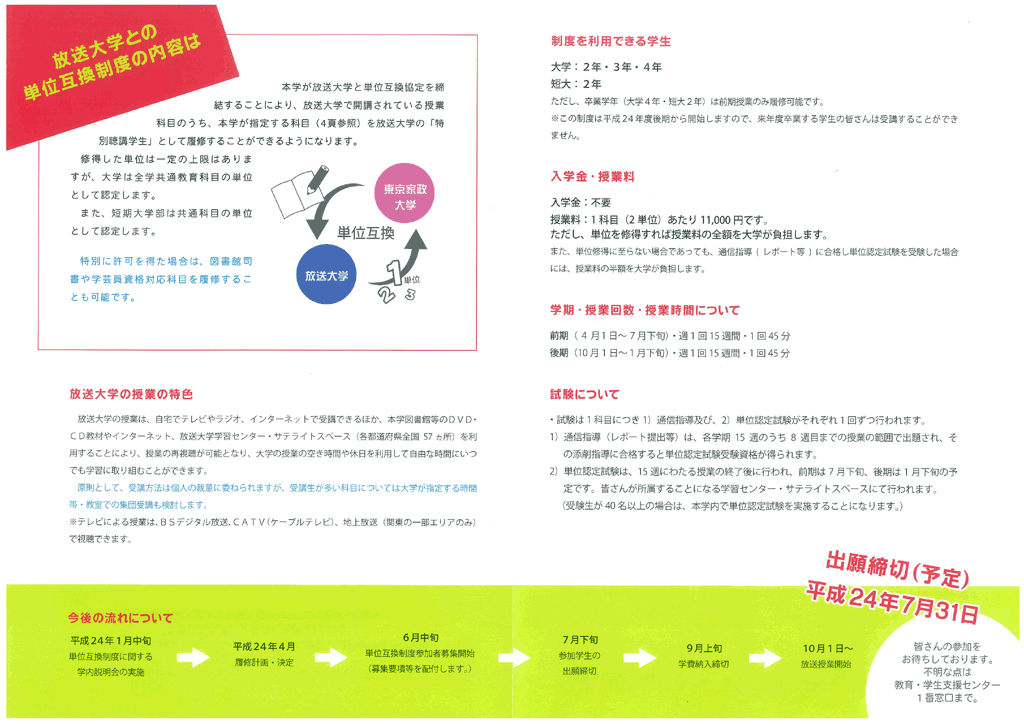 東京家政大学が放送大学と単位互換に関する協定を締結――平成24年度より「特別聴講学生」として放送大学の指定科目が履修可能に