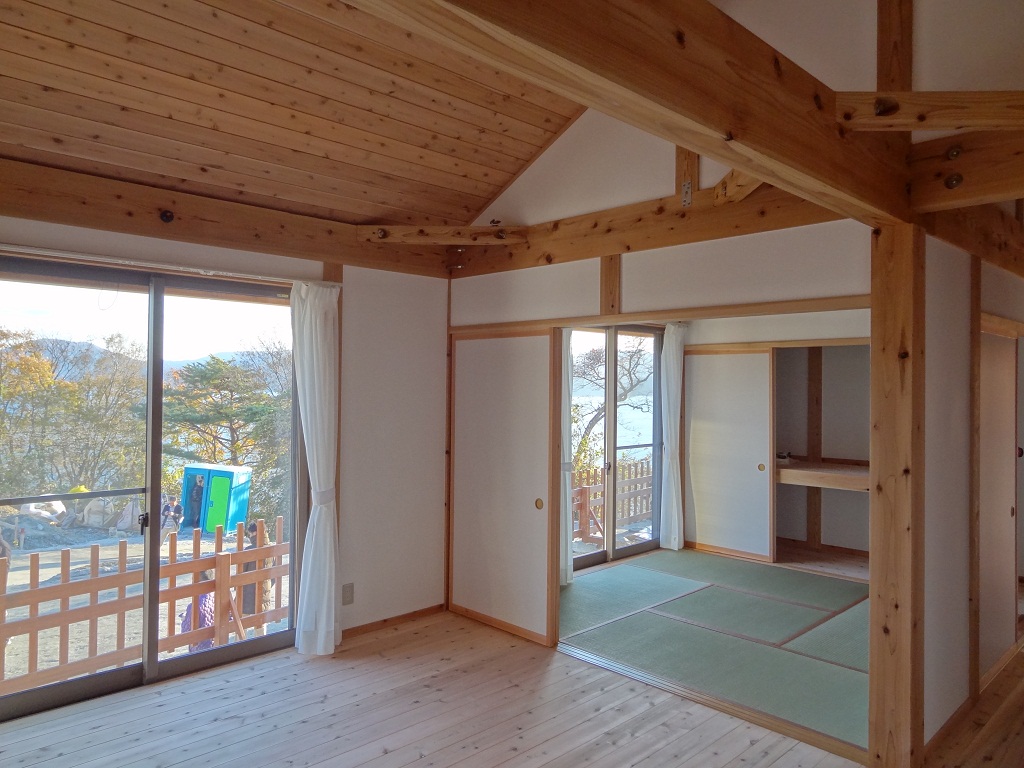 入居住民の方々は「落ち着いて気持ちも安らげる」と安堵の表情を浮かべていた。景観を大事にした「村」の再生、コミュニティーの復活が始まる第一歩となる入村式となった。
