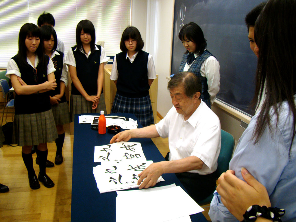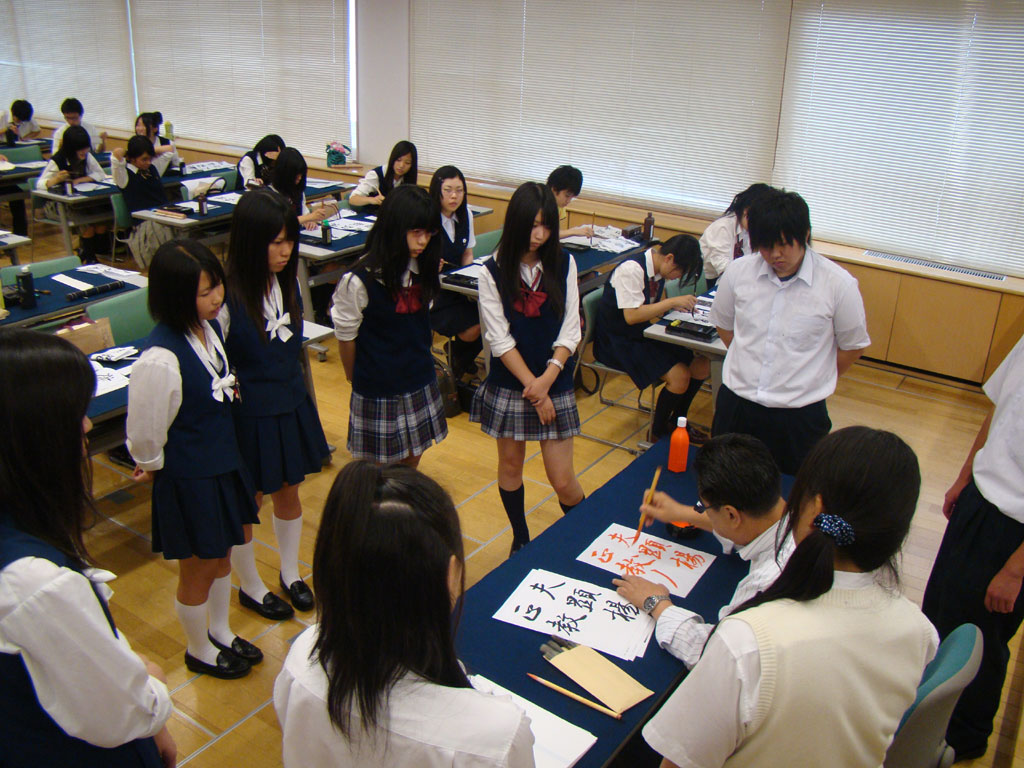 その一つが、高校生を対象に首都圏と地方で開催している書道講座である。同大の書道学科書道教員が古典の臨書・創作の方法について懇切丁寧に指導するこの講座は、毎回多くの高校生が参加し、好評を博している。