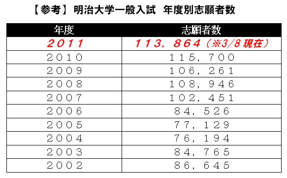 【速報】 明治大学 2011年度一般入試