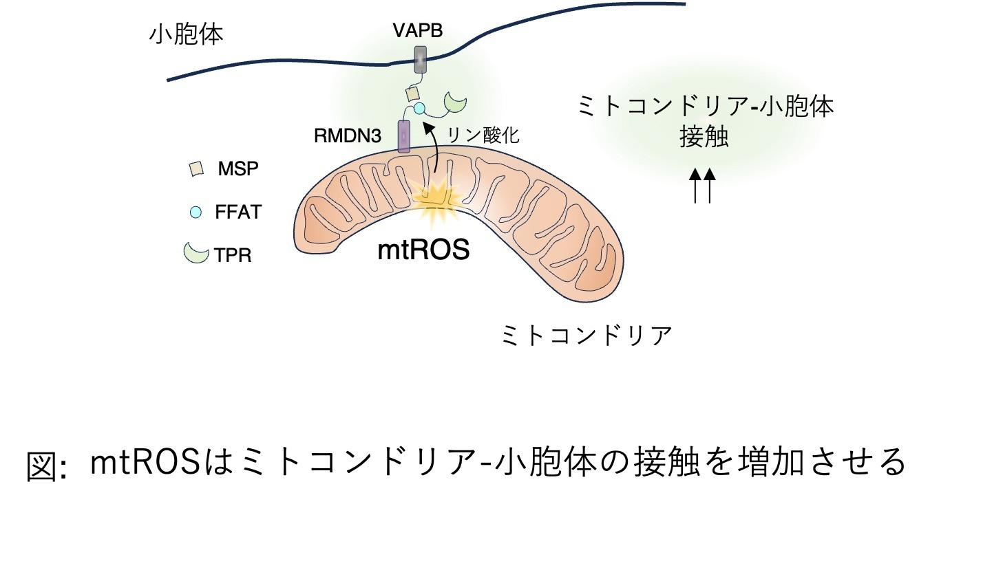 さらに、この接触部分に存在する「RMDN3(PTPIP51)」という酵素が、ミトコンドリアで発生した脂質ラジカルを小胞体へと移動させていることを解明しました。これにより、ミトコンドリアのダメージを軽減し、細胞の生存を助けている可能性があります。