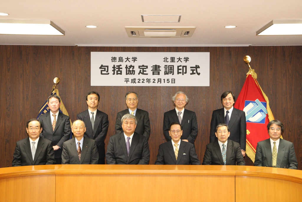 徳島大学と北里大学は、2月15日(月)13時から、北里大学白金キャンパスにて、連携・協力に関する包括連携協定の調印式を行った。