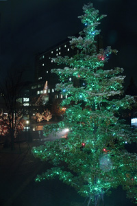 同大チャペルライトアップ・本学チャペル前のモミの木