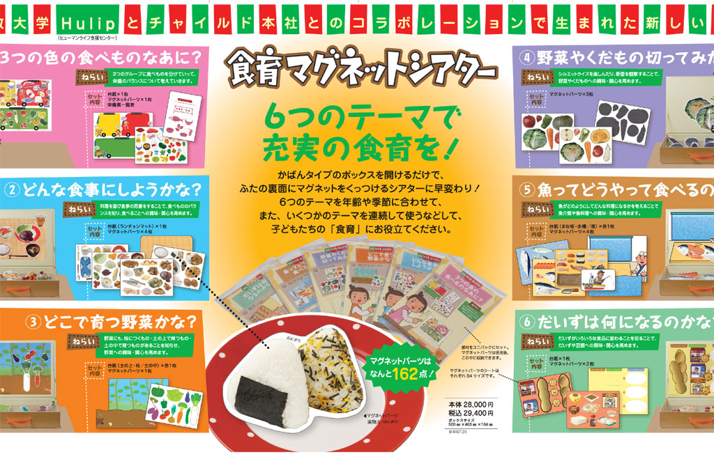こうした同大の知的資源と、保育現場のニーズを大切にするチャイルド社の思いが出会い、子どもたちに食育のエッセンスを伝える媒体物として「食育マグネットシアター」は完成した。