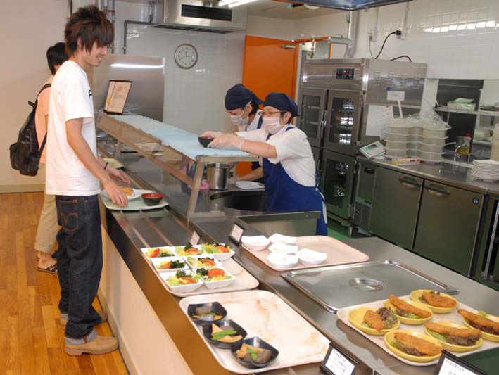同学部事務課では、「まだ半年弱ですが、学生たちの食に対する意識は確実に高まっており、教育的効果も抜群です。食堂にはテレビなども設置、学生たちの休養や懇親の場としても活用されています」と学食の早速の効果と好評ぶりを話している。