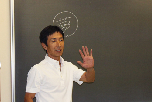 当日は、「夢先生」として水沼貴史氏(サッカー元日本代表)、大竹七未氏(女子サッカー元日本代表)が、アシスタントとして安永聡太郎氏(元Jリーガー)、小野寺志保氏(女子サッカー元日本代表)がキャンパスを訪れ、小学生親子といっしょに、夢について真剣に考える特別な授業を行った。