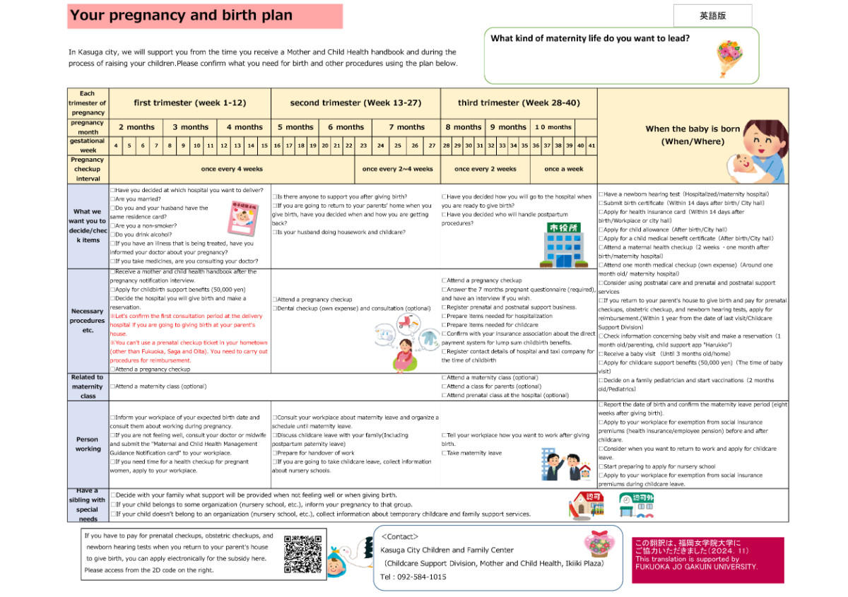 福岡県春日市「妊娠~出産・子育てセルフプラン」を福岡女学院大学の学生が多言語翻訳 –福岡女学院大学