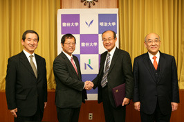 龍谷大学と明治大学は、大学間交流に関する包括協定および両大学理工学研究科間の学生交流に関する覚書を、3月28日(土)に龍谷大学深草キャンパスで締結した。