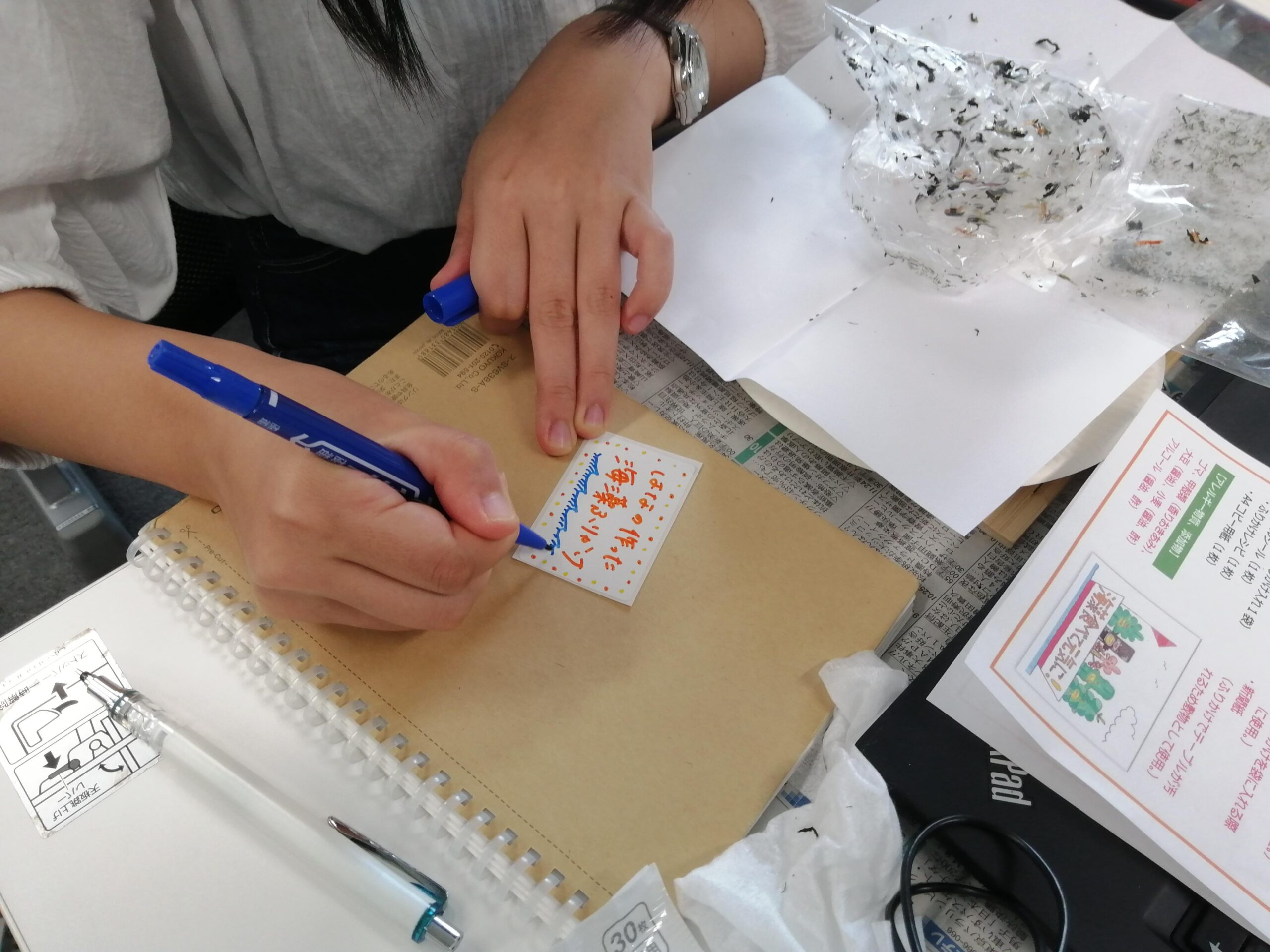 南三陸町海藻ふりかけづくりと、災害時の帰宅困難者支援施設運営ゲーム(KUG)