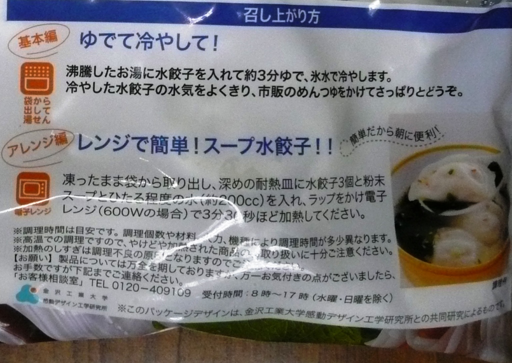 こうした共同研究を、産学連携の拠点として2007年3月に開設した感動デザイン研究所が継承。このたびの「海老入り水餃子」が米久との共同開発第一号として、包装パッケージに感動研マークを入れた形で発売されることとなったものである。