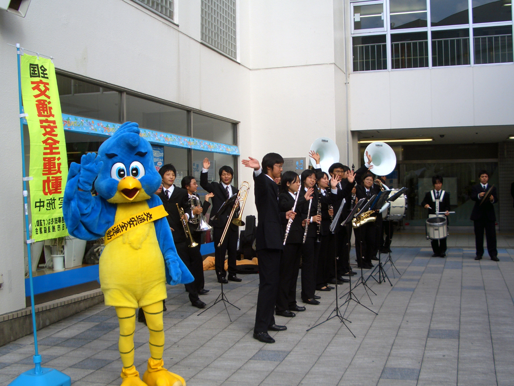 吹奏楽部は、吹田警察署が実施する春・秋の交通安全運動街頭キャンペーンに4年前から参加。演奏を通じてキャンペーンへの注目度を高め、市民に交通安全を訴えてきた。このたび、長年のキャンペーン参加により、交通安全活動を積極的に推進し交通事故防止に貢献したとして高く評価され、「交通安全功労者表彰(団体の部)」を授与されることになった。