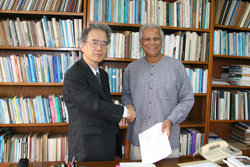 その後、笠原副総長は、ダッカ大学とグラミン銀行に行き立教大学との学術交流協定に調印した。グラミン銀行では、ムハマド・ユヌス総裁が調印式に出席し、「今後、共同してアジアの貧困に取り組むNGOの人材育成をする必要がある」と述べ、協定に沿った今後の共同プログラムについて意見を交換した。