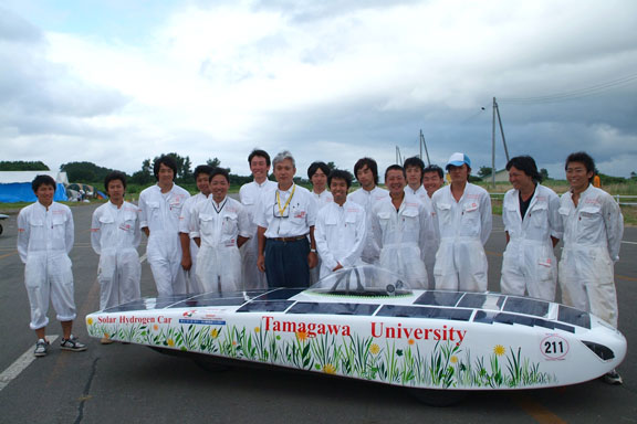 玉川大学は、太陽電池と水素燃料電池によるハイブリッド・ソーラーカーで「第10回全日本学生ソーラー&FCカーチャンピオンシップ(JISFC)」に出場し、燃料電池部門5連覇を達成した。