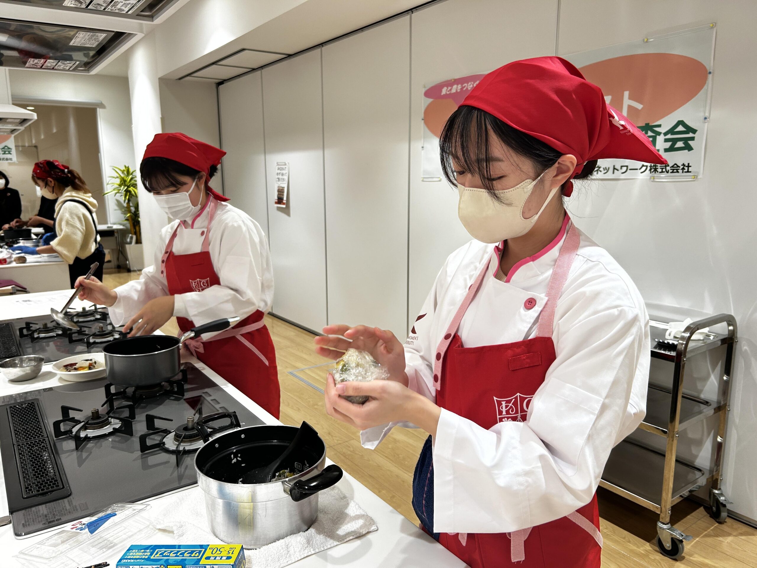1次書面審査で選定された8チームによる実演審査会がhu+g MUSEUM(ハグミュージアム)にて令和7年1月18日に開催され、甲南女子大学 人間科学部 生活環境学科の濵口ゼミ(食生活分野)の近澤 愛佳さん、内藤 さくらさんの「さつまいも」チームが、「さつまいもいっぱい!!野菜が摂れる朝ごはん」で銅賞を受賞しました。