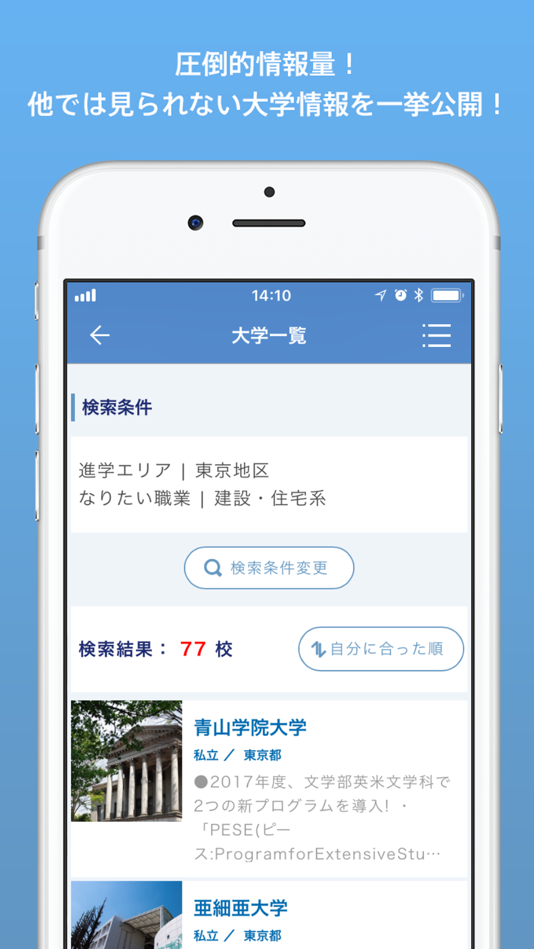 ・大学検索:エリア、なりたい職業、学問系統から大学を絞り込んで表示