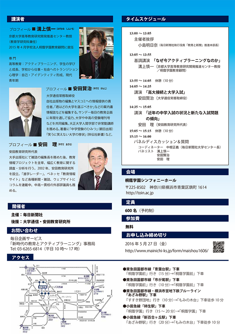 〇問い合わせ:毎日企画サービス「新時代の教育とアクティブラーニング」事務局