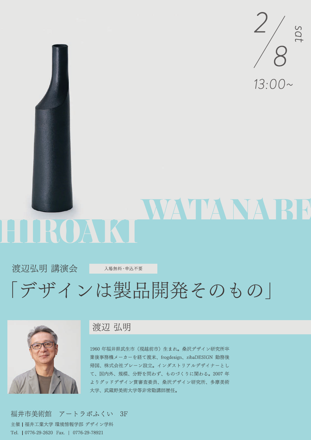 また、福井県出身のインダストリアルデザイナーである渡辺弘明氏による講演会も開催いたします。