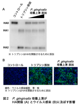 Ⅰ.歯周病関連細菌P. gingivalisのジンジパインがインフルエンザウイルスのHAを開裂させることでウイルス感染を成立させる