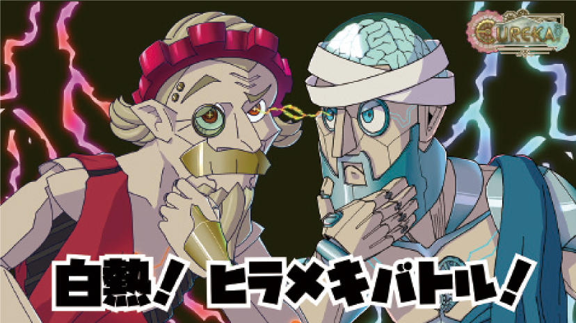 ゲームタイトルの「エウレーカ」は、古代ギリシャ語の感嘆詞で「見つけた!」という意味で、ひらめく快感をこの言葉に託して名付けられている。また、この言葉を叫んだとされる数学者のアルキメデス(赤)とピタゴラス(青)を、キャラクターモチーフにしている。