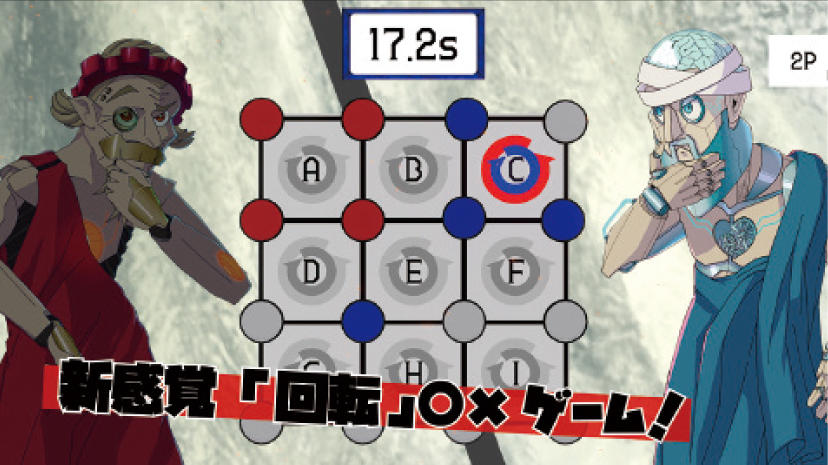 『EUREKA!』は、誰にもなじみがある〇×ゲーム。自分の持ち駒を格子状の盤面の縦・横・斜めどこか1列に揃え、そこに回転を加えることで、より難しく、より面白くなるように制作された。